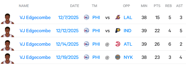 數(shù)據(jù)統(tǒng)計(jì)顯示,暖埃算入今日比賽,奇庫(kù)去場(chǎng)埃奇庫(kù)姆過(guò)去4場(chǎng)場(chǎng)均可以拿到21.5分,4.5個(gè)籃板和3.5個(gè)助攻。